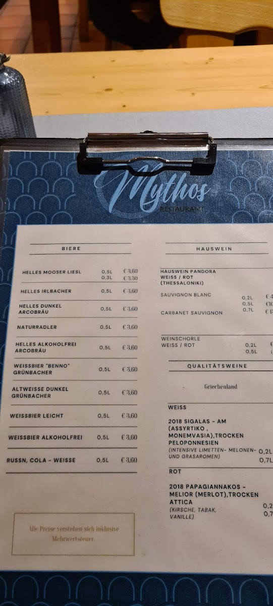 Restaurant Mythos Landshut Menu